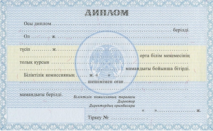 Образцы дипломов техникума / ПТУ Казахстана: