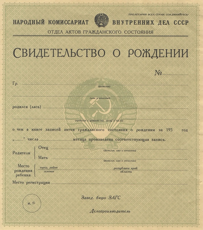 - свидетельство о рождении любого года выпуска, включая времена СССР – а дополнительно к нему может прилагаться список предметов и оценок, которые можно выбрать по вашему желанию;