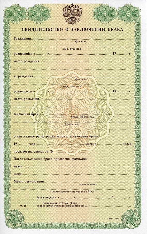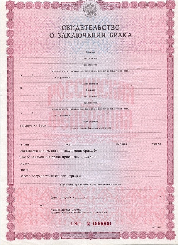 Образцы свидетельств о заключении брака: