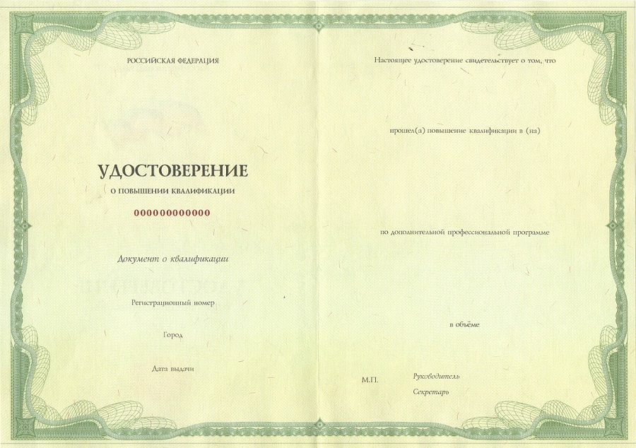 Образцы удостоверений о повышении квалификации: